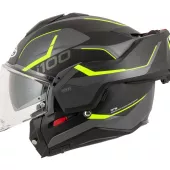 Přilba HJC i100 přináší změnu do rodiny překlopných přileb HJC. Přilba má plně překlopnou bradu a dvojí homologaci P/J, díky čemuž může být použita jako otevřená i jako integrální přilba. Integrovaná tmavě kouřová sluneční clona se snadno ovládá pomocí mechanismu na levé straně přilby. Skořepina z polykarbonátu je ideálně vyvážená a vhodná i pro celodenní jízdu.Materiál