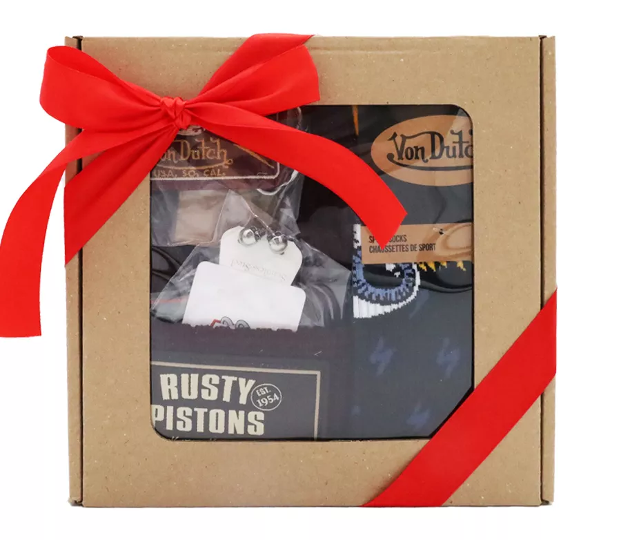 Nevíte, co darovat na Valentýn ? Máme pro vás ideální řešení – jedinečný balíček plný stylových dárků! Vše je krásně zabalené v dárkové krabici, připravené pro vaši polovičku. V balíčku naleznete:Von Dutch Eyeout klíčenkaRusty Pistons Vernon red one size beaniePonožky Von Dutch Lotg (2 páry)SKULL náušnice Valentýnský balíček, který potěší každého milovníka motorek a dobrého stylu!
