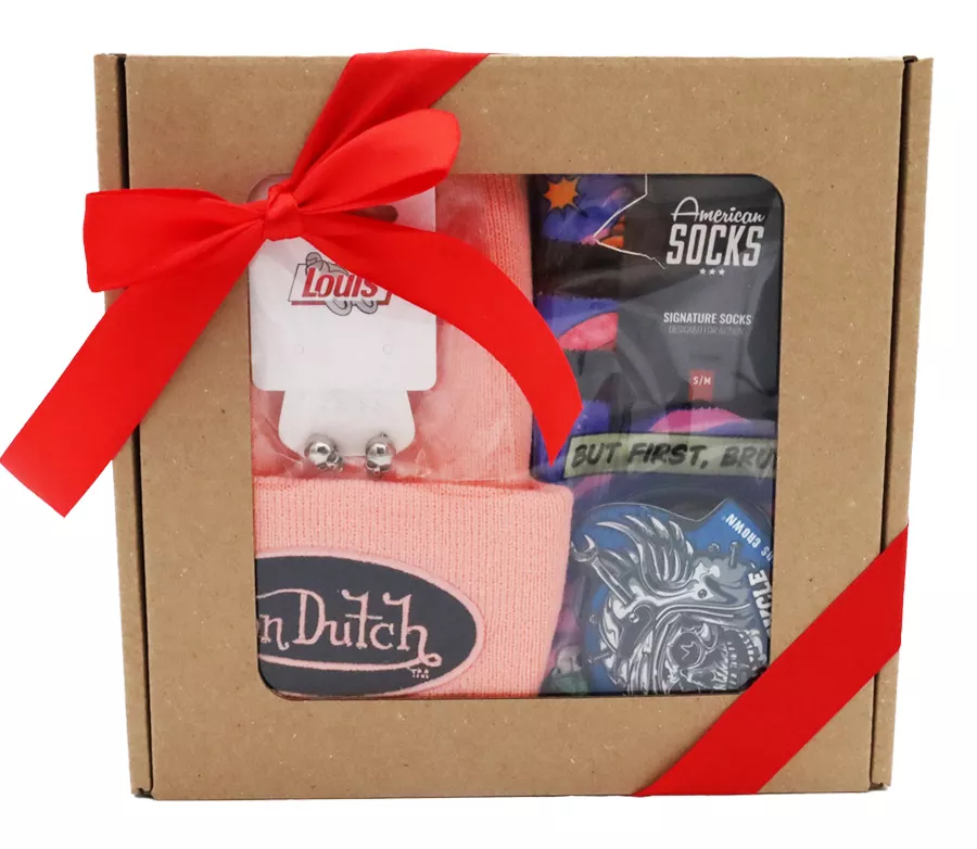 Nevíte, co darovat na Valentýn ? Máme pro vás ideální řešení – jedinečný balíček plný stylových dárků! Vše je krásně zabalené v dárkové krabici, připravené pro vaši polovičku. V balíčku naleznete:Von Dutch Bonnet dámská čepicePonožky American Socks BrunchSKULL náušnice • Bikers Crown Motorcycle shop - magnet Valentýnský balíček, který potěší každého milovníka motorek a dobrého stylu!