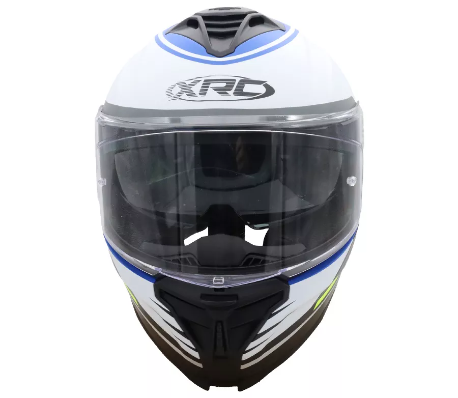 Helma je vyrobena z odolné ABS polykarbonátové skořepiny s aerodynamickým tvarem pro stabilitu při jízdě. Díky dvěma velikostem skořepiny a dvěma variantám EPS výplní (XS–M, L–XXL) nabízí přesnější usazení na hlavě a vyšší úroveň ochrany. Helma splňuje homologaci ECE 22-06. Bezpečí • ABS polykarbonátová skořepina • Aerodynamický tvar skořepiny • Dvě velikosti skořepiny • Dvě velikosti EPS výplní (XS–M, L–XXL) • Homologace ECE 22-06 • Čiré plexi s úpravou proti poškrábání • Příprava pro Pinlock 30 Pohodlí • Jemná vnitřní výstelka • Vyjímatelná a pratelná vnitřní výstelka • Integrovaná sluneční clona s anti-scratch úpravou • Ovládání sluneční clony u mechanismu plexi • Odnímatelný bradový deflektor • Hmotnost cca 1500 ± 50 g • Snadný systém výměny plexi • Čiré plexi v balení Ventilace • Větrání na bradě • Horní přední ventilace • Zadní výstup vzduchu pro efektivní proudění Zapínání • Pásek s mikrometrickou přezkou
