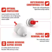- zvuky z okolní dopravy a komunikačních systémů zůstávají dostatečně slyšitelné díky filtrům AlpineAcousticFilters™