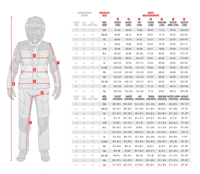 Pokud vybíráte nové oblečení, boty, helmu apod. a nejste si úplně jisti přesnou velikostí, je potřeba se důkladně přeměřit a naměřené hodnoty porovnat s tabulkami velikostí.