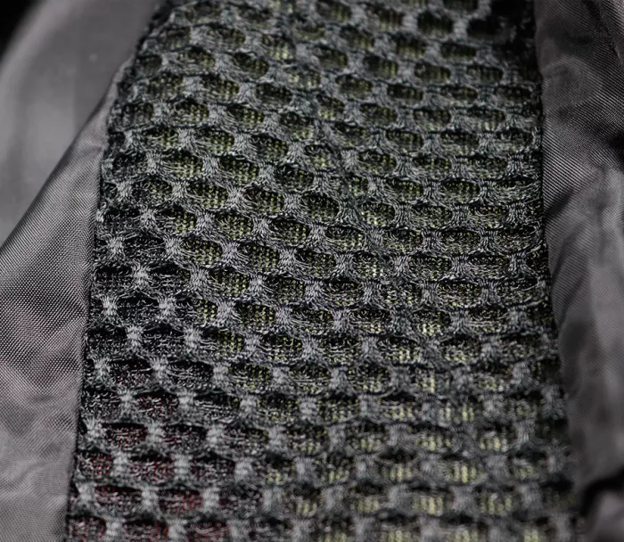 - Kevlarová výztuž v oblasti ramen, loktů a zad