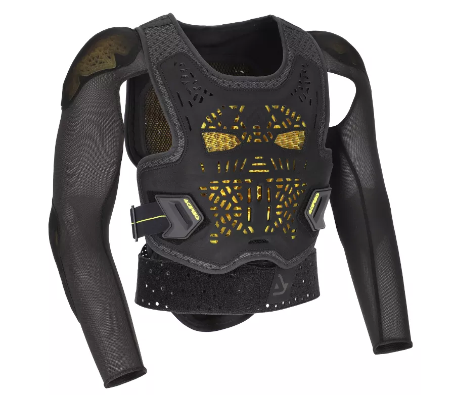 Chrániče hrudi, zad, ramen a loktů splňují CE certifikaci úrovně 2, takže poskytují vysokou míru bezpečí i při náročném použití. Polstrované ramenní popruhy zvyšují stabilitu při jízdě, elastické boční nastavení a bederní pás umožňují přesné přizpůsobení postavy. Systém je plně kompatibilní s krčními chrániči a podpěrami krční páteře.