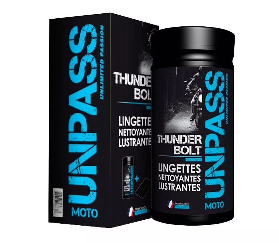 UNLIMITED PASSION představuje novou generaci ALL-IN-ONE ubrousků: THUNDERBOLT. Ubrousky jsou navrženy tak aby poskytly maximální účinnost a usnadnily údržbu vašeho motocyklu. Nadchnou Vás svou čistící silou, univerzálností a schopností obnovit vzhled vašeho stroje …bez námahy, vybavení a bez vody.