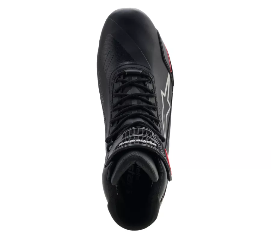 Alpinestars Faster-4 přenáší závodní know-how přímo do silničního provozu. Lehký pletený svršek z mikrovlákna zajišťuje vysokou prodyšnost a flexibilitu, zatímco integrované výztuhy a chrániče poskytují spolehlivou ochranu při jízdě. Pohodlí / Materiály • bezešvý pletený svršek z technického mikrovlákna – lehký a prodyšný • 3D mesh podšívka pro efektivní odvod tepla • mikrosemiš na patě proti klouzání chodidla • měkký textilní límec pro vyšší komfort v oblasti achilovky • polstrování jazyka a kotníku pro lepší usazení • anatomická vyjímatelná EVA stélka s Lycra povrchem • tlumicí mezipodešev v oblasti paty Zapínání / Stabilita • klasické tkaničky pro přesné dotažení • boční TPR pásek se suchým zipem pro dodatečné zajištění nohy Bezpečí • dvojitý chránič kotníku s rozdílnou hustotou materiálu • zesílená špička a pata skrytě uložené pod svrškem • asymetrická špička chránící oblast řazení • rozšířená TPU výztuha kotníku na vnější straně • TPR prvky v oblasti špičky a lýtka pro lepší oporu a flexibilitu • CE certifikace EN 13634 Podešev • nová gumová směs s vysokou přilnavostí • integrovaná výztuha pro lepší oporu chodidla • zvýšená odolnost paty proti opotřebení