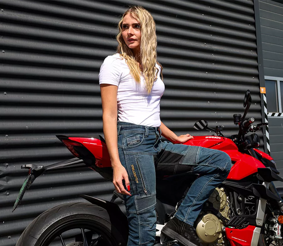 Trilobite. Tri-Stretcher® PRO 5.0 Denim je moderní technická tkanina, která je budoucností jízdy na motocyklu. Vyrábí se ze směsi materiálů z rodiny polyamidů jako je Nylon a aromatických polyamidů, jako je Aramid nebo polyuretanová vlákna vyrobená z Elastanu, a zároveň zahrnuje přírodní bavlněnou tkaninu. Tato látka je jedinečná svou úžasnou pevností a zároveň nízkou hmotností. Tri-Stretcher® PRO 5.0 Denim je jeden „chytrý tým“ různých vláken spletených dohromady, které vás v případě nehody ochrání stejným způsobem jako celokožená kombinéza, ale bez kompromisu na pohodlí.