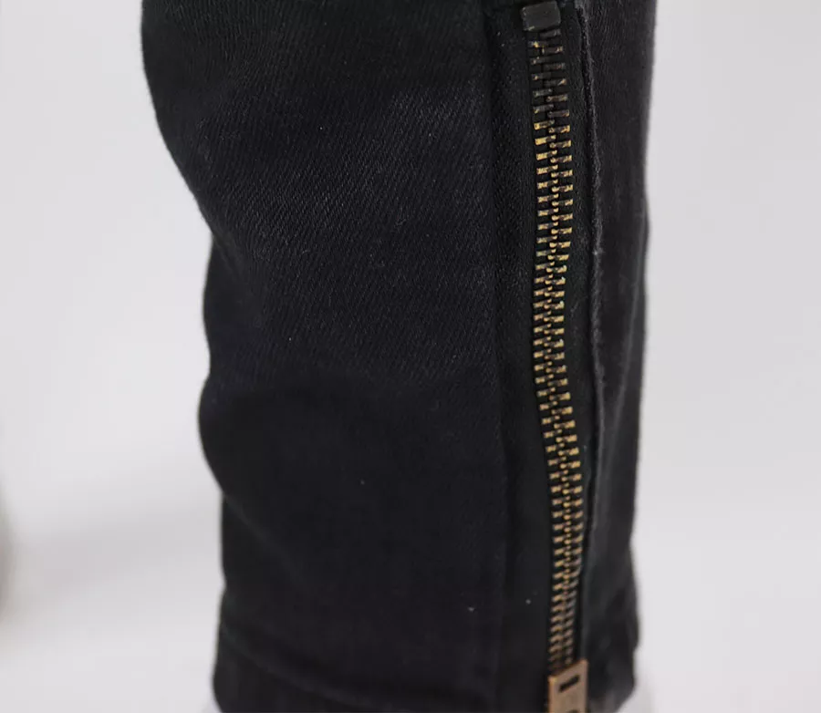 Micas džíny jsou podšity aramidovými vlákny vyrobenými z originálního materiálu Kevlar® firmou DuPont ™. Podšívka pokrývá kolena a boky, a zajistí odolnost proti oděru. Micas Urban se dodávají standardně s kolenními chrániči. Vkládání kolenních chráničů je velmi snadné díky skrytému zipu v kolenním strečovém panelu. Džíny mají přípravu na chrániče boků.