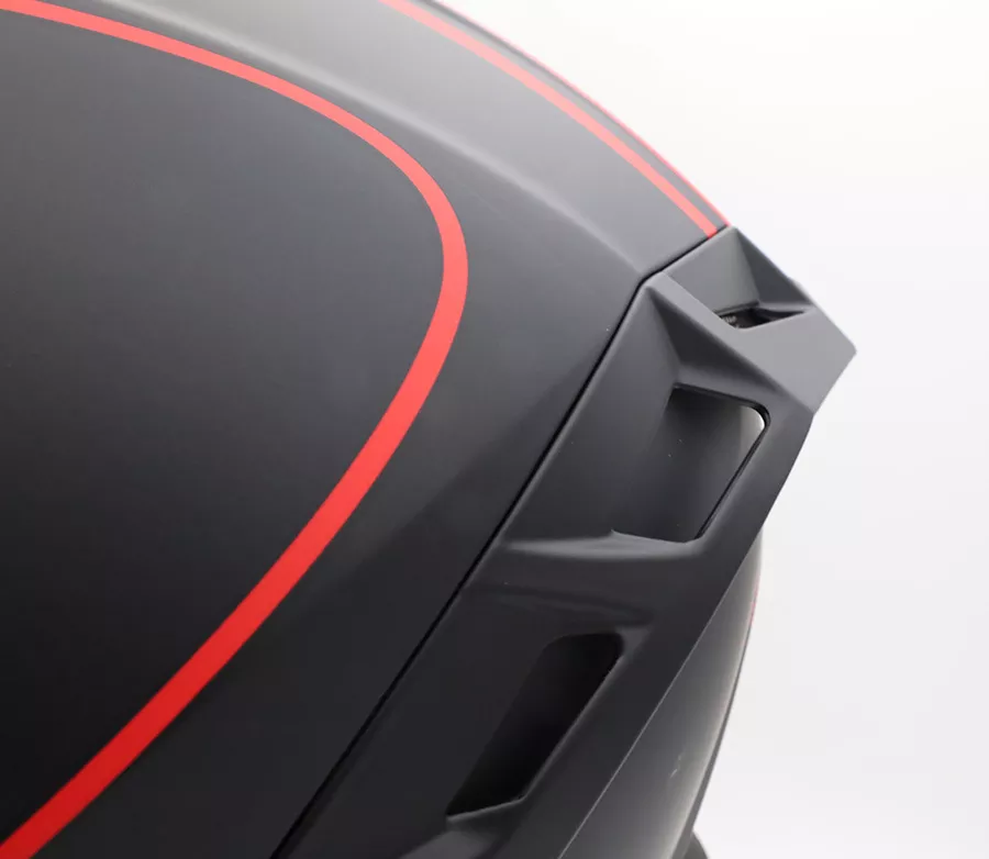 Helma je vyrobena z odolné ABS polykarbonátové skořepiny, která poskytuje vysokou úroveň ochrany při zachování příznivé hmotnosti. Díky dvěma velikostem skořepiny a dvěma variantám EPS výplní (XS–M, L–XXL) se lépe přizpůsobí tvaru hlavy a zajišťuje efektivní absorpci nárazu. Aerodynamický tvar přispívá ke stabilitě při jízdě. Helma splňuje homologaci ECE 22-06. Bezpečí • ABS polykarbonátová skořepina • Aerodynamický tvar skořepiny • Dvě velikosti skořepiny • Dvě velikosti EPS výplní (XS–M, L–XXL) • Homologace ECE 22-06 • Čiré plexi s úpravou proti poškrábání • Příprava pro Pinlock 30 Pohodlí • Jemná vnitřní výstelka • Vyjímatelná a pratelná vnitřní výstelka • Integrovaná sluneční clona s anti-scratch úpravou • Ovládání sluneční clony u mechanismu plexi • Odnímatelný bradový deflektor • Hmotnost cca 1500 ± 50 g • Snadný systém výměny plexi Ventilace • Větrání na bradě • Horní přední ventilace • Zadní výstup vzduchu pro optimální proudění Zapínání • Pásek s mikrometrickou přezkou