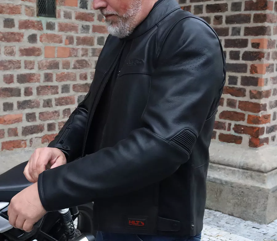 Stylová a bezpečná bunda z prémiové kozí kůže a elastického spandexu. Nabízí vysokou úroveň ochrany, komfortu i praktičnosti, a proto je ideální volbou pro každodenní vyjížďky. Bezpečnost: • CE certifikace – třída AA dle EN 17092-3:2020 • Chrániče ramen a loktů s CE certifikací Level 2 • Připraveno pro zádový chránič (není součástí) • Reflexní prvky pro vyšší viditelnost Materiál: • Vrchní část: 80 % prémiová kozí kůže HLT, 20 % spandex pro flexibilitu • Podšívka: 100 % polyester Komfort: • Měkký neopren na límci a manžetách pro pohodlné nošení • Dvě vnější a dvě vnitřní kapsy na telefon nebo peněženku • Ventilační komfort díky kombinaci kůže a strečových panelů Další vlastnosti: • Rukávy se zipem YKK a bezpečnostním zámkem • Nastavitelné pásky s originálními XRC druky HLT kůže: Technologie hybridní kůže (Hybrid Leather Technology) - je inovativní technologie, která v sobě zahrnuje to nejlepší z kůže i textilních materiálů. Vysoce odolná kůže, která vyniká oděruvzdornosti a pevností, je použitím speciální technologie laminace spojena s vrstvou vybrané textilie. Díky tomuto spojení je možné použít kůži mnohem tenčí a tím snížit váhu celé bundy až o 35%. Zároveň tímto spojením dosáhneme částečnou voděodolnost.