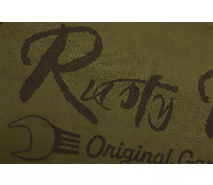 - módní zúžený střih - složení 100% výběrová bavlna - velký potisk na hrudi - kulatý žebrovaný výstřih - dvojité švy na koncích rukávu a spodním lemu - vyztužená semišová jemná páska za krkem s logem Rusty Pistons - bez nepříjemného štítku za krkem - Rusty Pistons logo nášivka na bočním švu zabaleno v Rusty Pistons originální papírové krabičce raglánové rukávy