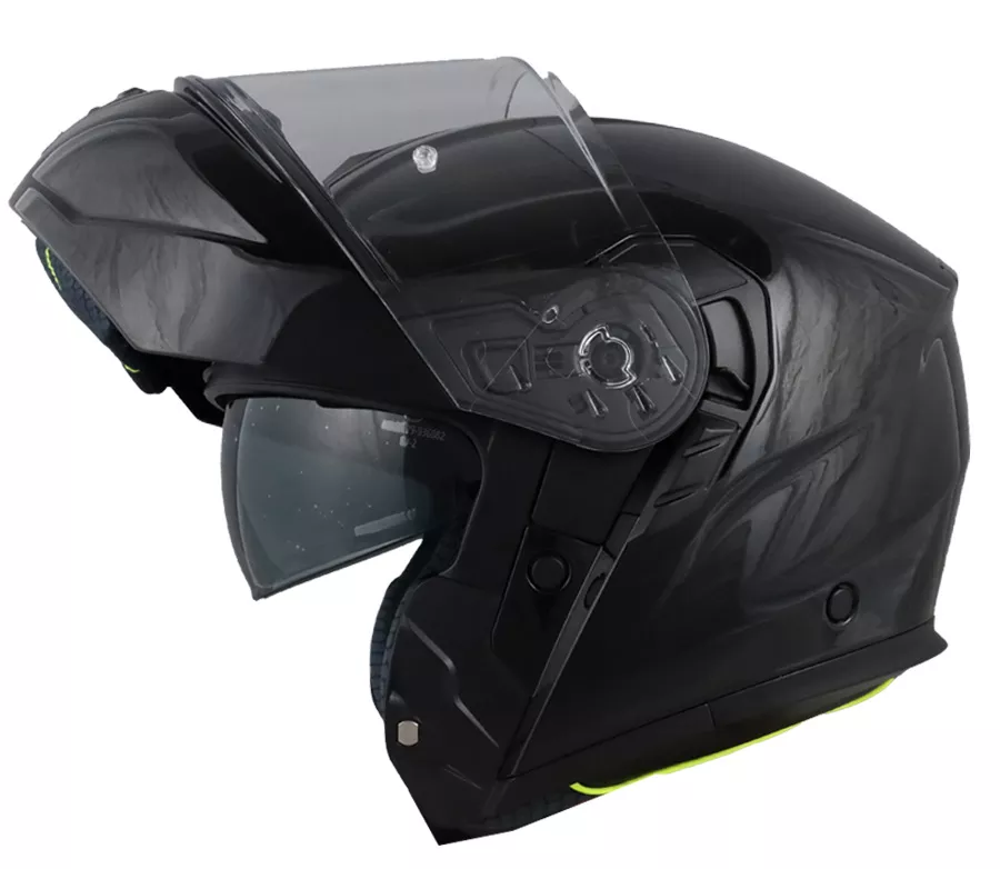 Výklopná helma je vyrobena z odolné polykarbonátové skořepiny s aerodynamickým tvarem pro stabilní a pohodlnou jízdu. Jedna velikost skořepiny a dvě varianty EPS výplní zajišťují dobré usazení a účinnou absorpci nárazu. Integrovaná sluneční clona a čiré plexi s přípravou pro Pinlock zvyšují komfort za všech světelných podmínek. Helma splňuje homologaci ECE 22-06 P/J. Bezpečí • Polykarbonátová skořepina • Aerodynamický tvar • Jedna velikost skořepiny • Dvě velikosti EPS výplní • Homologace ECE 22-06 P/J • Čiré plexi s anti-scratch úpravou • Příprava pro Pinlock Pohodlí • Jemná vnitřní výstelka • Vyjímatelná a pratelná výstelka • Integrovaná sluneční clona s anti-scratch úpravou • Ovládání sluneční clony páčkou na boku helmy • Snadný systém výměny plexi • Hmotnost cca 1500 ± 50 g Ventilace • Větrání na bradě • Horní přední ventilace • Zadní výstup vzduchu pro optimální proudění Zapínání • Pásek s mikrometrickou přezkou
